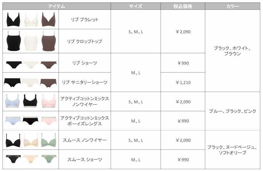 9月11日発売のAMOSTYLE BY Triumph「Simple Basic」は、リブ素材のブラレットやクロップトップ、スポーティーデザインのノンワイヤーブラなどをラインアップ。