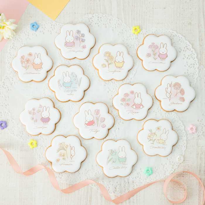 「Flower Miffy バースデーフラワーアイシングクッキー」は、12か月の誕生花を繊細に描いたデザイン。ミッフィーと花々が彩るおしゃれなクッキーは、誕生日プレゼントや季節ごとのご褒美にも最適です。