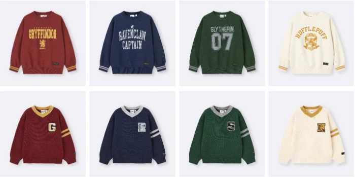 ジーユーのハリー・ポッターコレクションは、ウィメンズ4型、メンズ5型、キッズ2型をラインナップ。価格は390円~3,990円で、全国の店舗およびオンラインストアで販売開始です。