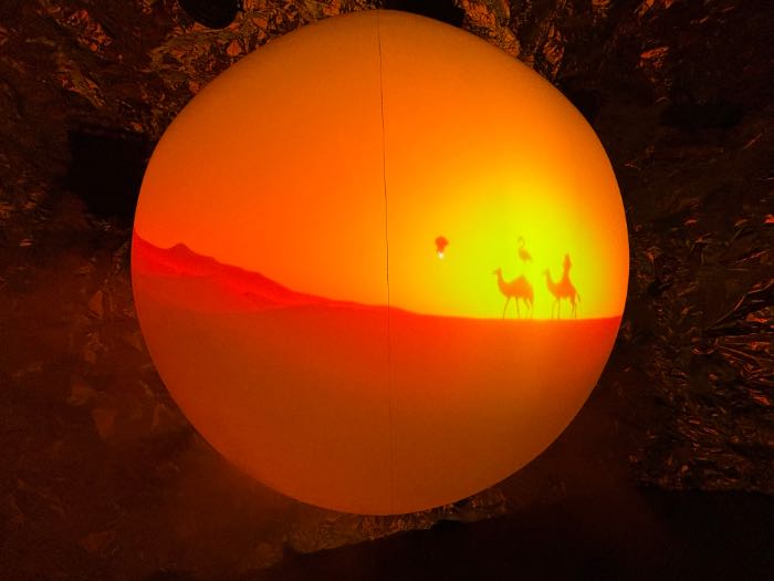 手に触れることのできる砂漠はプロジェクトマッピングの演出があります。