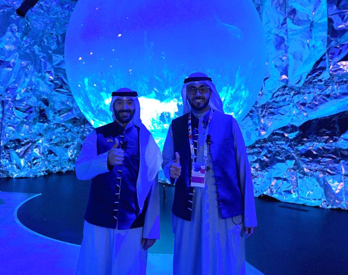 初めの導入シアターでは、丸い真珠のような球体スクリーンが登場。小さな国ながらも美しい砂漠と石油資源で発展を遂げたクウェートの歴史が描かれます。