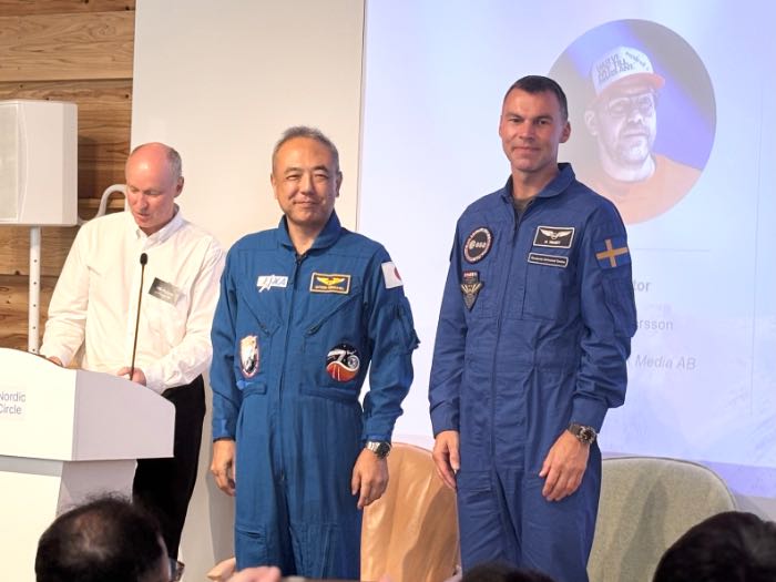大阪・関西万博、地球の未来と生物多様性 ウィークの一環として、北欧パビリオンにて、「ノルディック・スペースデー」が開催されました。日本の宇宙飛行士 古川聡氏・北欧の欧州宇宙機関(ESA)の宇宙飛行士兼 Saabのチーフ・イノベーション・オフィサーとして活躍する、マーカス・ワント氏らが壇上し、「宇宙」をテーマに議論しました。