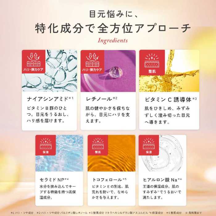 目元悩みに全方位アプローチする成分配合