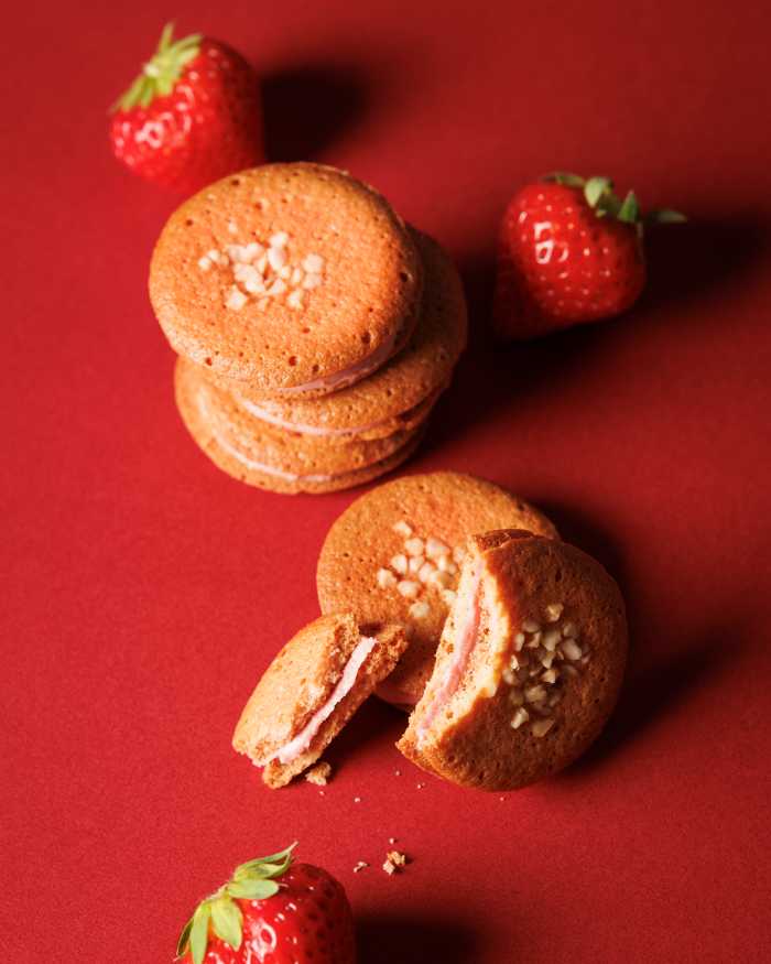 あまおう苺は甘酸っぱい苺のチョコレートをサンドし、繊細なサクホロ食感が絶妙なバランスで味わえます。