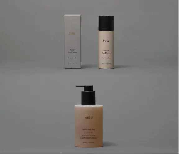 Soieのハンドセラムとハンドソープは、どちらも上質な香りと潤いを提供。軽やかなテクスチャーでベタつきもなく、フレグランスがふわっと広がります。