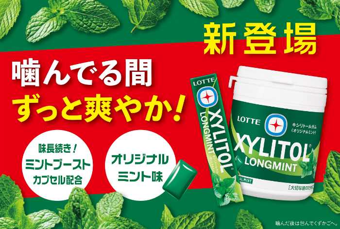 新発売の「キシリトールガム ロングミント」は、ペパーミントを中心にハーブ香料とスパイス香料を絶妙にブレンド。