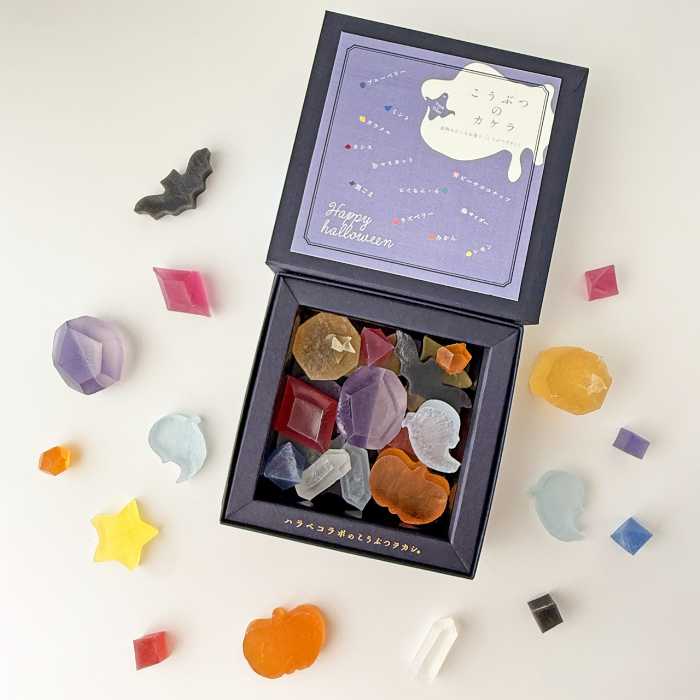 今回のポップアップでは、多彩なこうぶつヲカシが一堂に揃います。ハロウィン限定「こうぶつのカケラ」や「カプセル入りこうぶつヲカシ」、九州ならではの素材を使った「九州のこうぶつヲカシ」、誕生石をテーマにした「9月サファイア」「10月トルマリン」なども登場。