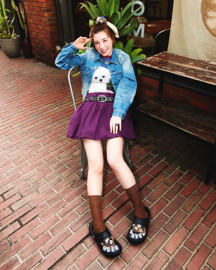 仲里依紗さんが提案する秋のおでかけスタイルは、クロックスの快適さとデザイン性を存分に引き出しています。