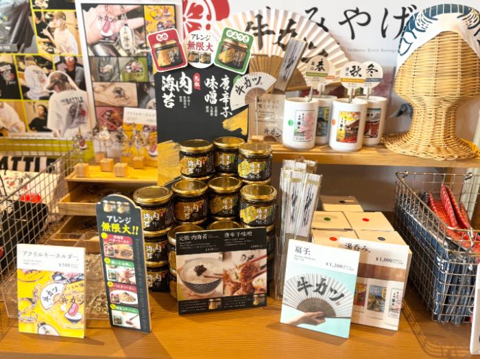 お土産やギフトコーナーも充実、お料理といただいた肉海苔は店頭でも購入可能なので、自宅で本格的なお店の味わいをお楽しみいただけます。湯呑みやお箸など和を感じる日本らしいデザインの日常使いできるアイテムも多数販売