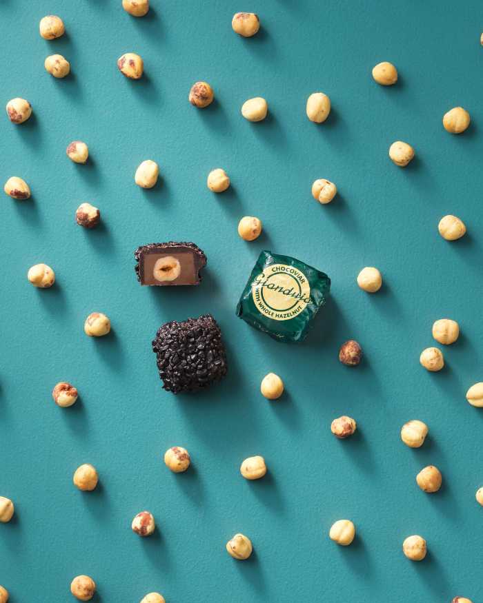 今回リローンチされる「チョコビア ジャンドゥーヤ」は、ホールのヘーゼルナッツを閉じ込めたジャンドゥーヤクリームをダークチョコレートで包み、表面にダークチョコビアをトッピング。