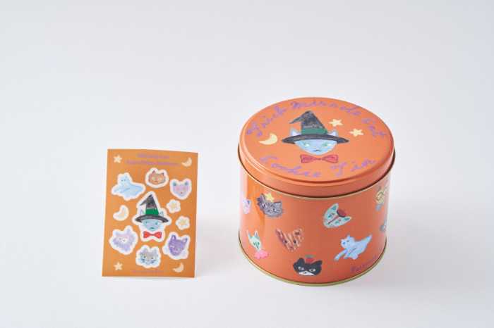 坂本美雨さんと前田ひさえさんのコラボで誕生した「Trick Miracle Cat Cookie Tin」は、ハロウィン仕様の限定缶(2,800円)として登場。