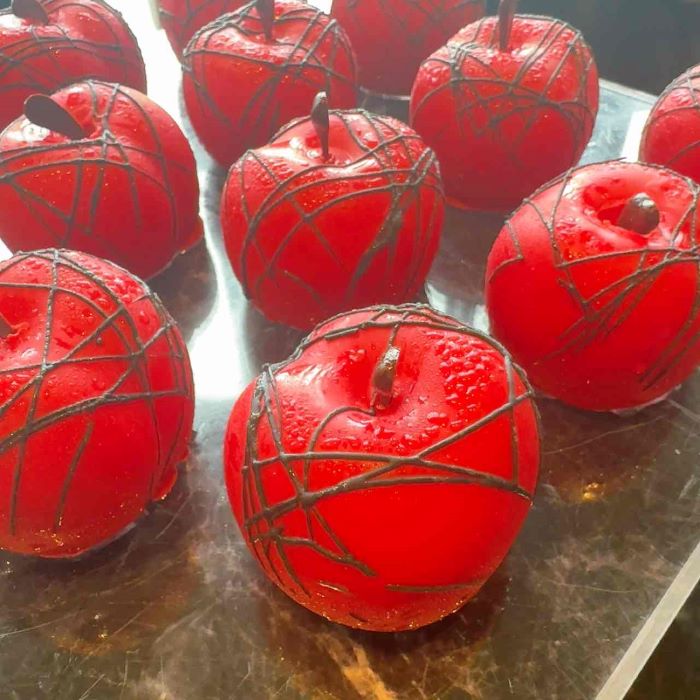 真紅に輝く艶やかな姿は、まるで物語に登場する“禁断の果実”。りんごのムースにコンポートを忍ばせ、爽やかな酸味と自然な甘みが折り重なります。甘美さと危うさを併せ持つ味わいは、一口ごとに悪役の世界へと誘われるような印象を残します。