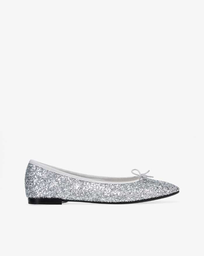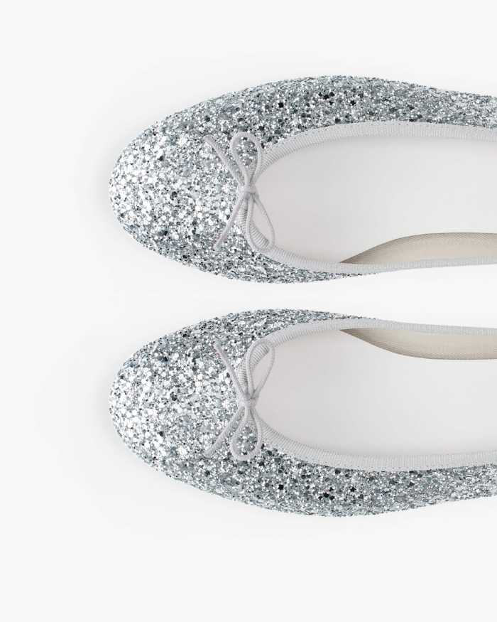 2025年秋冬の目玉は、繊細な光を放つグリッター素材をまとった「Cendrillon Haute バレエフラット」。歩くたびに表情を変えるニュアンスのある輝きが特徴です。
