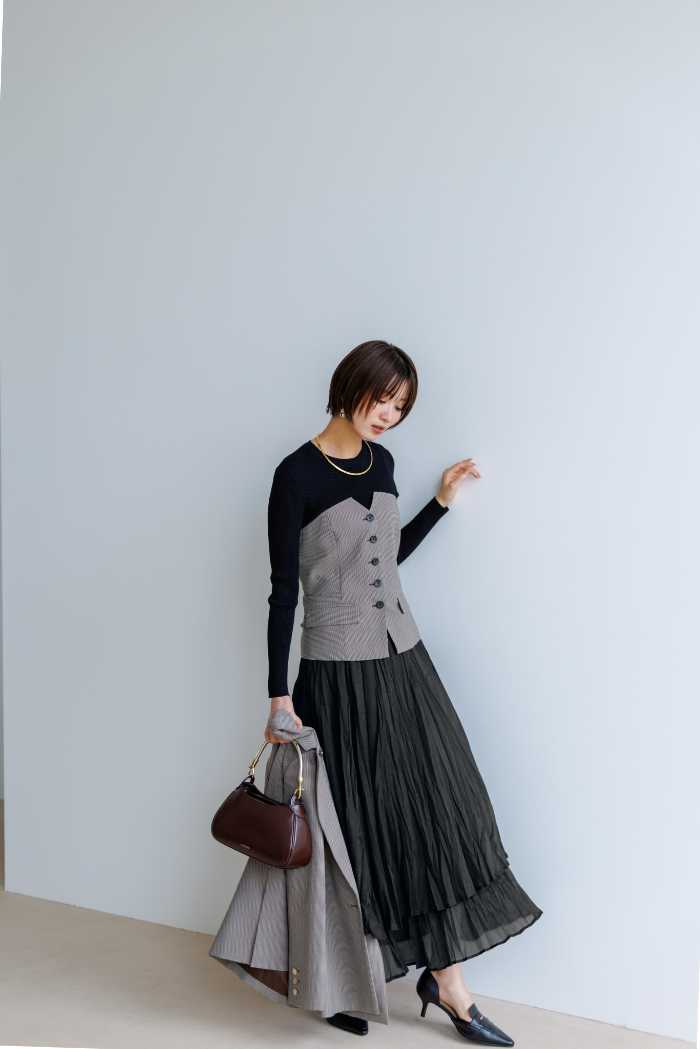 シンプルなのに華やかで、日常にリッチさを添えるコーディネートは、秋の装いにぴったりです。