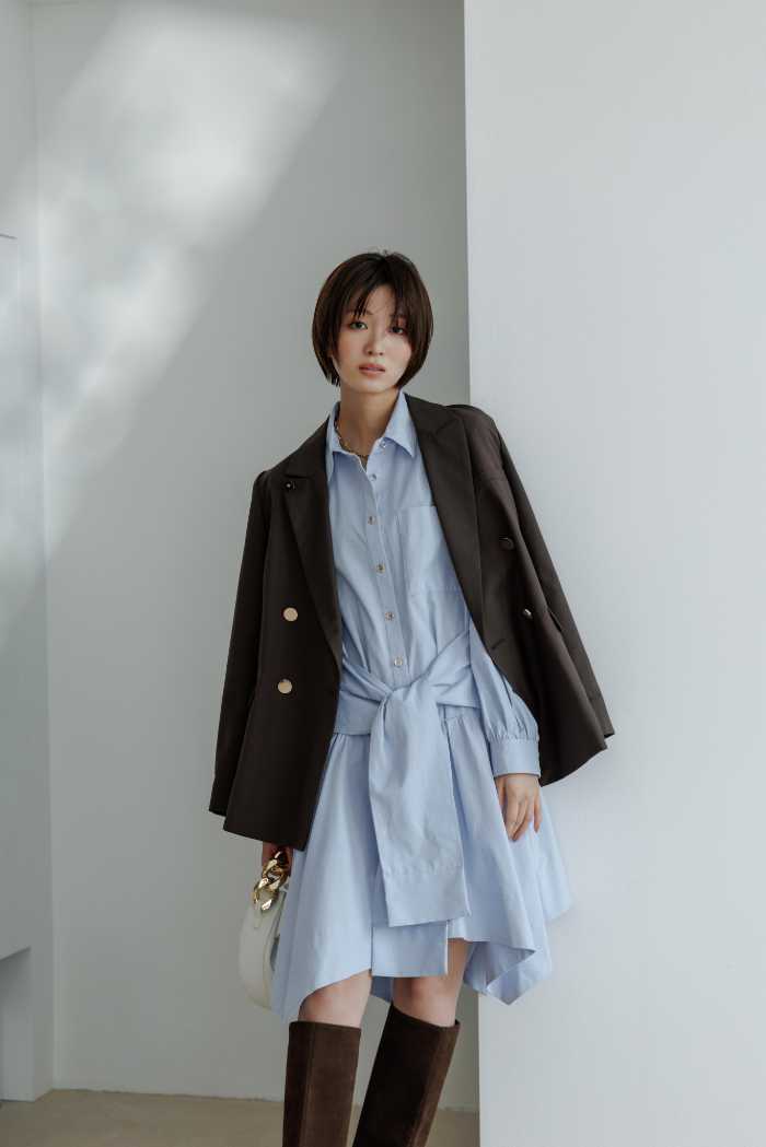 ミスセブンティーン出身で、雑誌『Ray』の専属モデルとしても活躍した岡崎紗絵さん。現在は俳優としても注目を集める彼女が着こなすことで、アプワイザー・リッシェの大人可愛い世界観がより鮮明に。