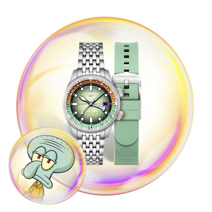 SPINNAKERの「BRADNER GMT バブリーグリンズ リミテッドエディション」は、スポンジ・ボブの陽気な笑顔を表現した遊び心あふれる限定腕時計♡