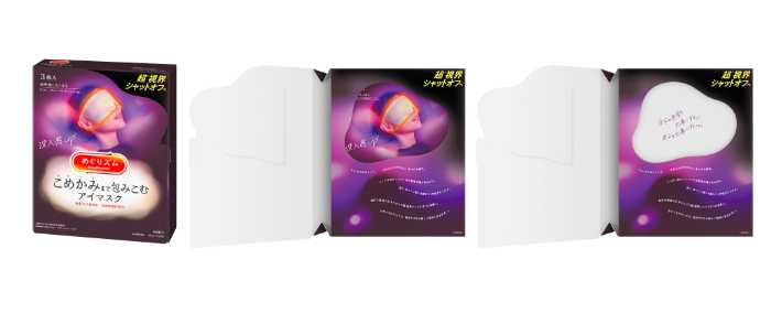 「めぐりズム こめかみまで包みこむアイマスク」は、従来品より覆う面積約1.3倍*1で、手のひらで包まれたようなフィット感が特徴♡