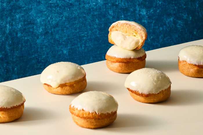 ふんわり焼き上げたシュー生地と「塩バニラフィナンシェ」の生地を組み合わせ、二度焼きで仕上げた特製生地に、生クリームとカスタードのダブルクリームをたっぷり閉じ込めました。