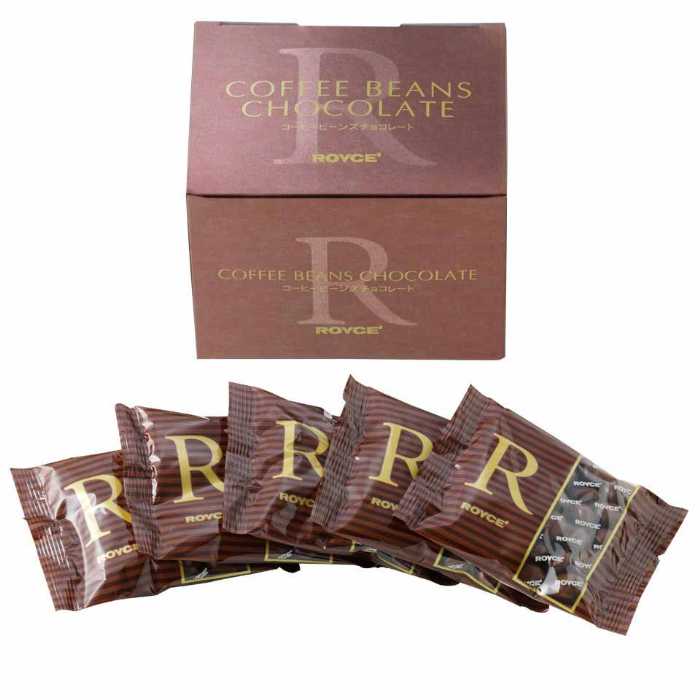 コーヒー豆を包んだ「コーヒービーンズチョコレート」(34g×5袋・1,458円)は、香ばしさが夜にぴったり。