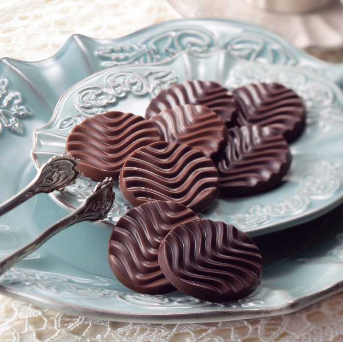 「ピュアチョコレート[スイート&ミルク]」(40枚入り・1,377円)は、丸い形がお月様そっくり♪