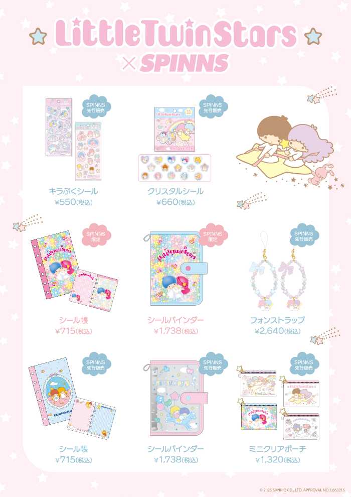 SPINNS限定のオリジナル柄を使用したシールが登場。平成レトロブームで再注目されている“シール文化”を、LITTLETWIN STARSらしい夢かわテイストで表現しました。