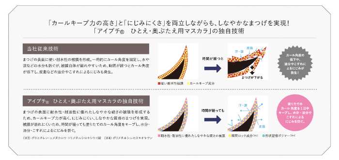 1日中カールをキープし、にじみにくい処方も嬉しい♪落とすときはポイントメイクアップリムーバーを使用してください。