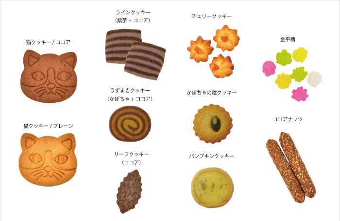 内容:猫顔クッキー1枚/アソートクッキー6種/金平糖