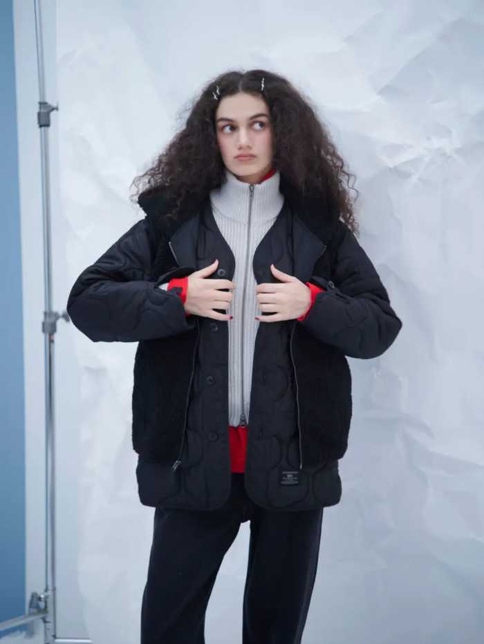 オニオンキルト構造の断熱性とボアフーディベストの保温性で、単体でも重ね着でも楽しめる4WAY仕様♡