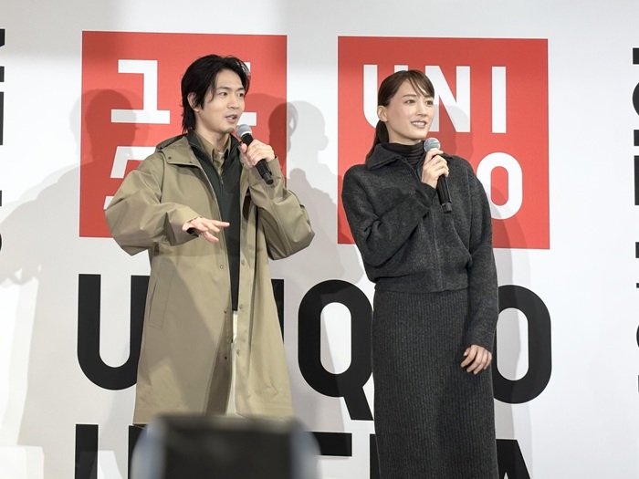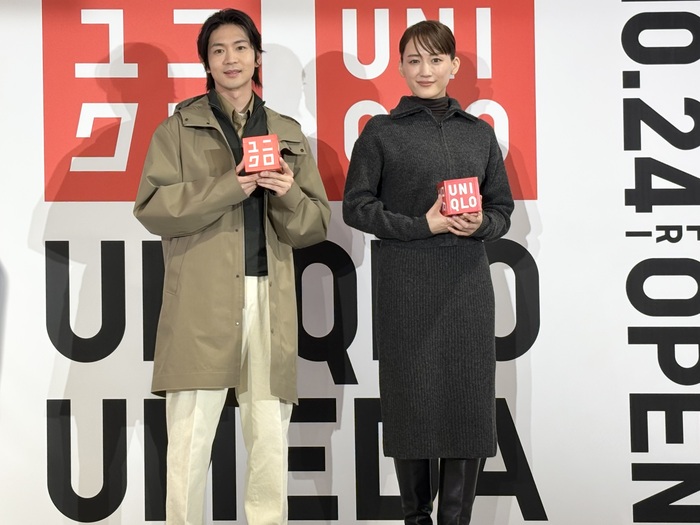 「UNIQLO UMEDA」記者説明会&メディア先行内覧会では、UNIQLO UMEDAオープニングキャストとして、綾瀬はるかさん、松下洸平さんが登場。