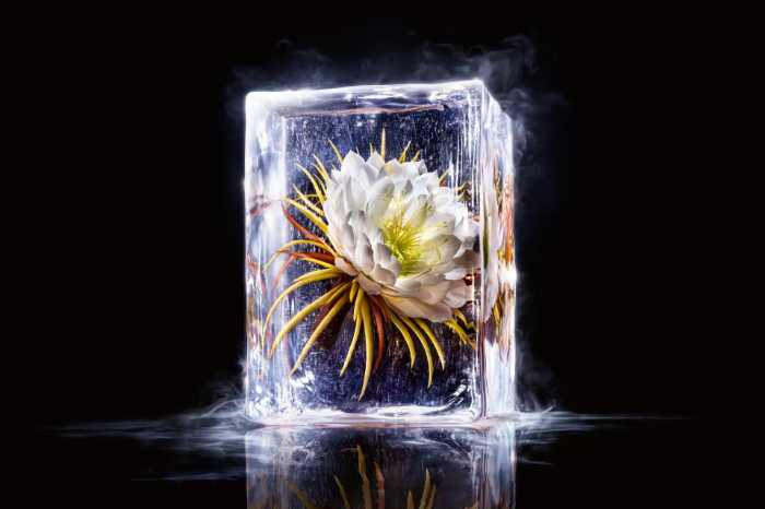 「クラランスプレシャス」は、一年に一度一夜限りで咲く月下美人を-196℃で瞬間凍結し、希少な「月下美人クリオエキス」2を抽出。