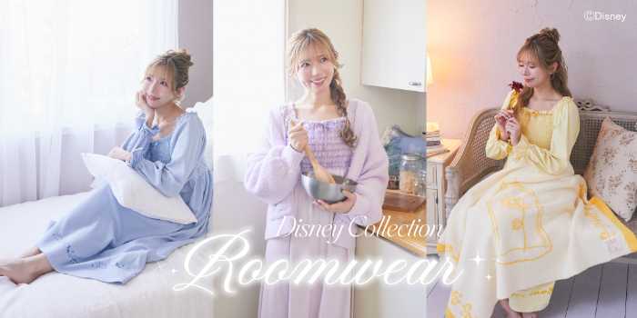 「シンデレラ(Light Blue)」「ラプンツェル(Lavender)」「ベル(Light Yellow)」をテーマにしたルームウェア。
