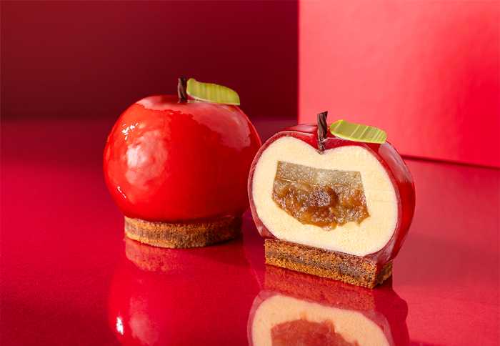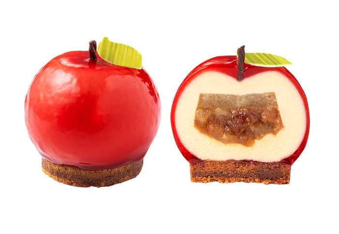 カスタードにバターを加えたりんご風味のクリームムース、さらに自家製コンポートと甘酸っぱいアップルジュレを重ねた2層仕立てで、ジューシーでなめらかな口どけを実現。