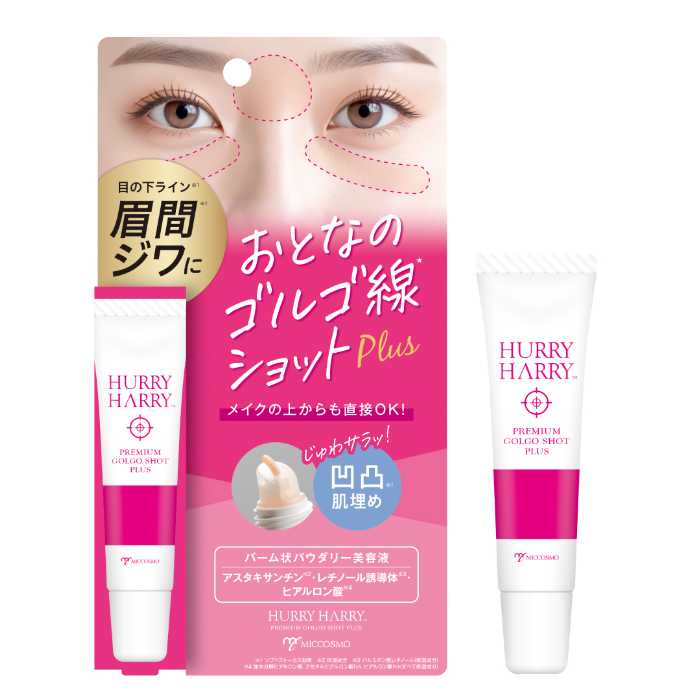 2025年9月29日発売の『ハリーハリー 大人のゴルゴ線ショットプラス』は1,800円(税抜)、15g入り。バーム状美容液で目の下・眉間のゴルゴ線を瞬時にカバー※1し、美容保湿成分※2~4でハリと潤いもプラスします♡