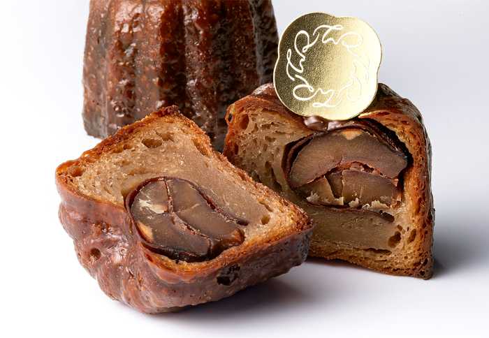 『ボルドーカヌレ・マロン』は、ヨーロッパ産マロンペーストを練り込んだ香ばしいカヌレ生地に、贅沢なひとつぶ栗を忍ばせています。