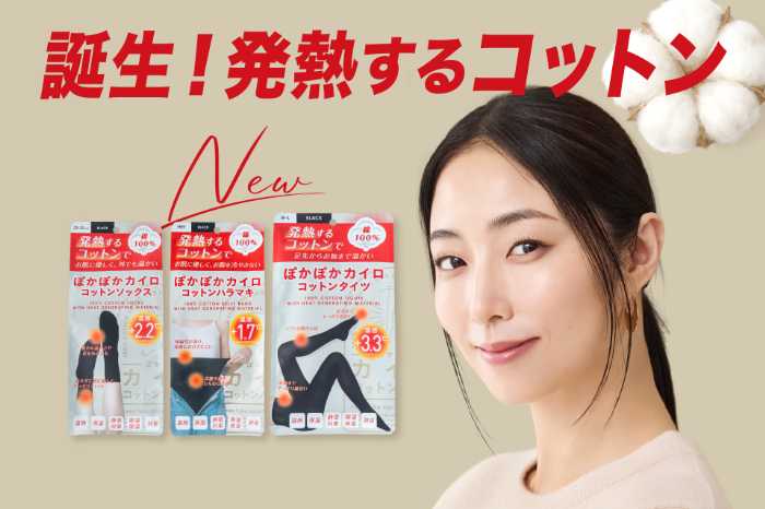 女性にとって冬の冷えは大きな悩み。そんな声に応えて「ぽかぽかカイロ」シリーズから新たに《コットンシリーズ》が誕生しました。肌にやさしいコットン100%を採用し、快適さと発熱効果を両立。さらにアンバサダーにはタレントのMEGUMIさんを起用♡累計103万足を突破した人気シリーズに加わる注目の新ラインは、冷え性対策の新定番になりそうです。