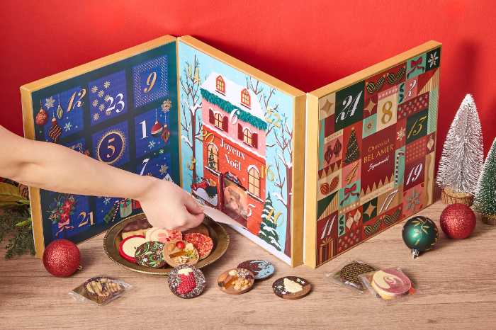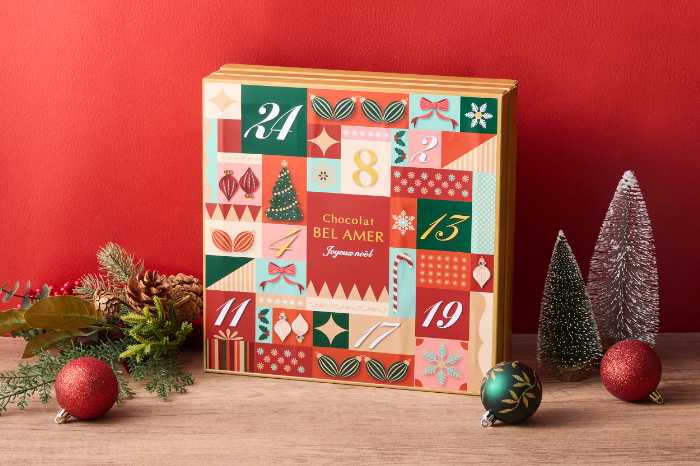 クリスマスまでの毎日を彩る「アドベントカレンダー」が、ショコラ専門店ベルアメールから今年も数量限定で登場します。12月1日から25日まで、1日1枚ずつ扉を開けるたびに現れるのは、同店の人気商品「パレショコラ」。ツリーや靴下などのクリスマスモチーフをあしらった特別デザインも含まれ、贅沢で遊び心あるひとときを届けてくれます。