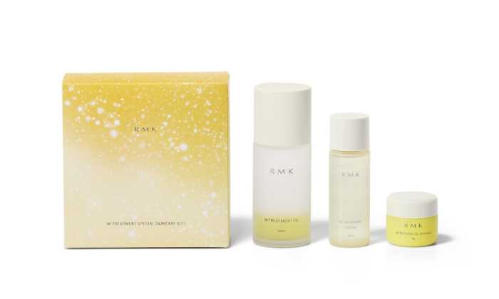 「RMK Wトリートメント スペシャル スキンケアキットⅠ」は6,050円(税込)。現品サイズのプレケアオイルに加え、ローションとクリームのミニサイズがセットに。