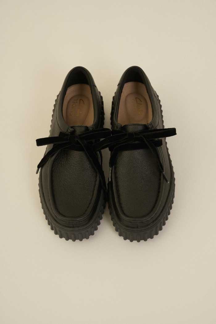 コラボアイテムは【SNIDEL/CLARKS】Torhill Bee(23,100円・税込)。CLARKSの定番モデル「Wallabee」のアッパーに、90年代に誕生した「Big Gripper」のチャンキーソールを組み合わせた人気デザインです。