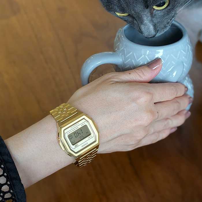 ゴールドのA1000G-9JF(20,900円・税込)は、マットで高級感のあるメタル仕上げが魅力。アクセサリー感覚で身に着けられ、特別な時間にも寄り添います。