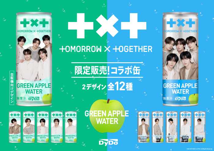 TXTとダイドードリンコがコラボした「グリーンアップルウォーター」は、爽やかな飲み心地と限定デザインが同時に楽しめるスペシャルな1本。期間限定のため、出会えるのは今だけ。