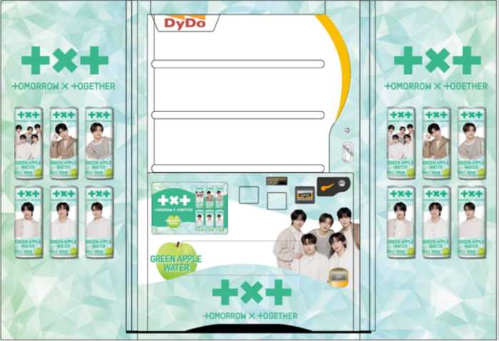 発売を記念し、渋谷・新宿・大阪にTOMORROW X TOGETHERラッピング自販機が登場。メンバーのビジュアルで彩られた自販機で購入体験を楽しめます。