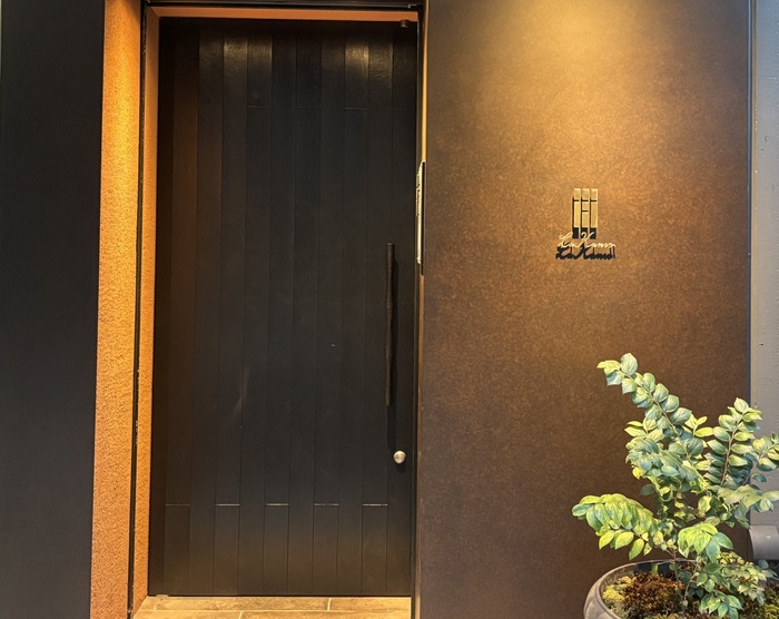 大阪・南森町エリアにあるイノベーティブ フレンチレストラン、店頭にはインターフォンが用意されており、押すと扉が開き中へ入ると洞窟のような空間から、専用のエレベーターに乗り店内へ、隠れた秘密の部屋へ導かれるようにレストランへ到着、洗練された大人の空間は座ると胸が高鳴らない女性はいないはず、特別な夜が始まります。