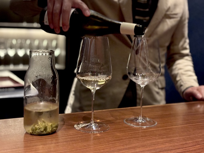 お料理と合わせていただくのは、お料理ごとにソムリエが厳選する、ワインペアリングもしくは中国・台湾産の高級茶葉を使用したティーペアリング。