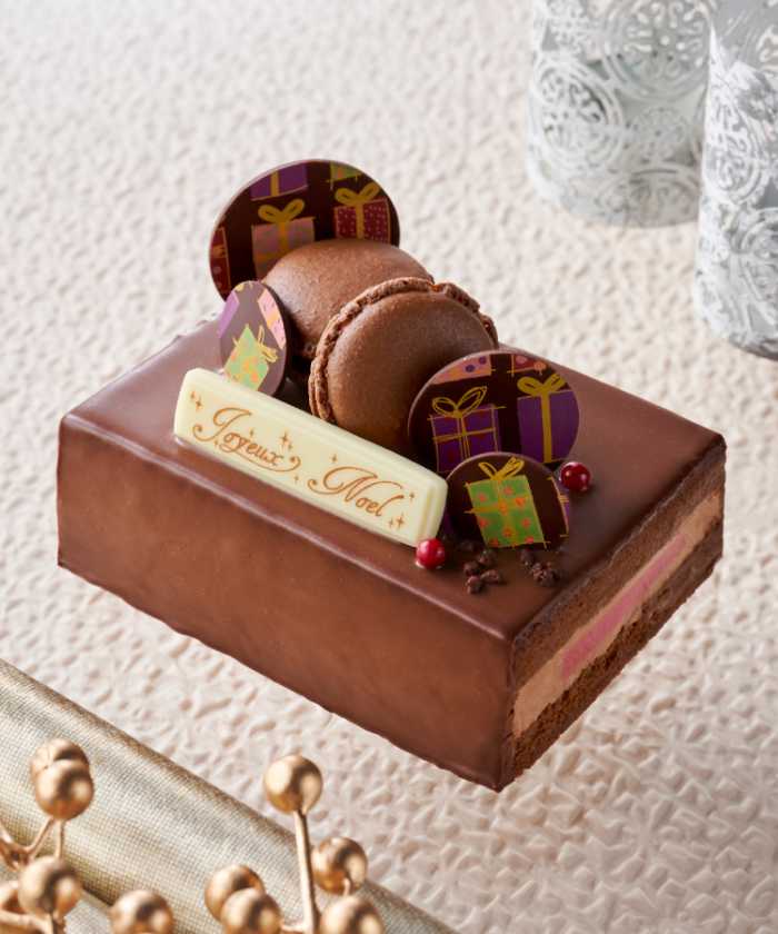 スフレショコラ生地にマスカルポーネ入りシャンティショコラを重ね、ガナッシュで包んだリッチな味わい。