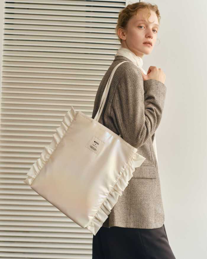立体フリルと縦型シルエットでA4やPCも収納可。