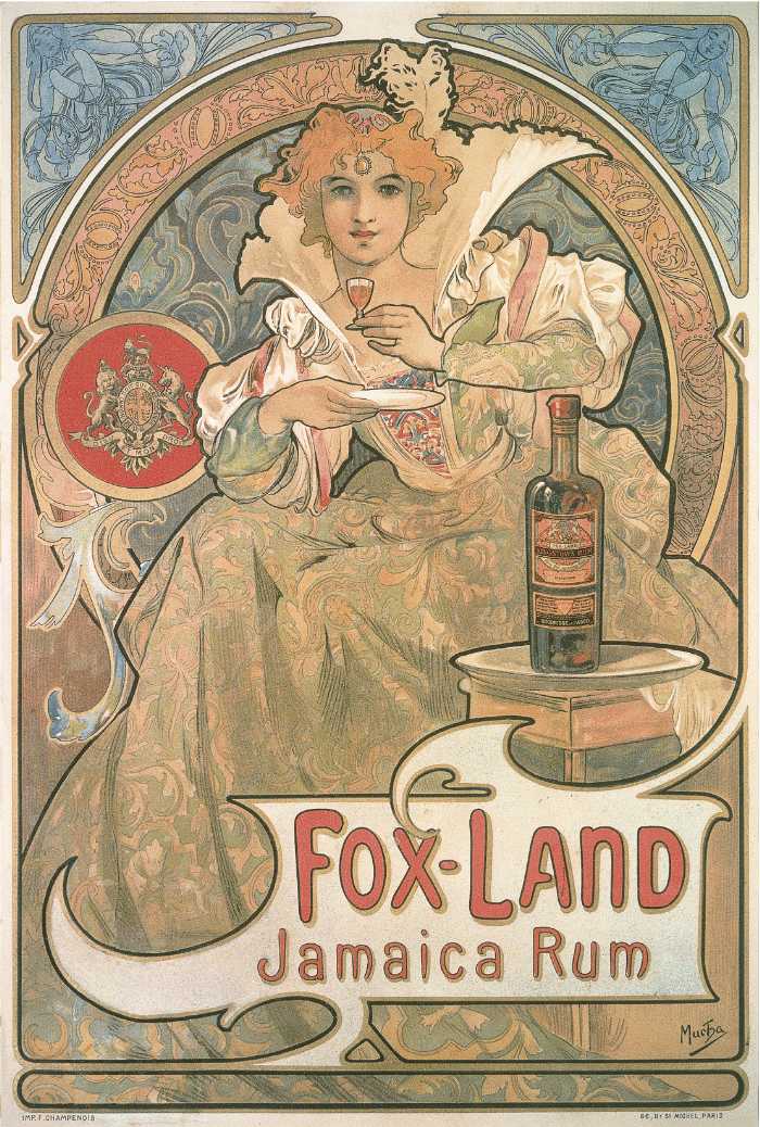 MUCHAから登場する「ジャマイカ・ラム ダークラム」と「ジャマイカ・ラム ホワイトラム」は、いずれもミュシャの1897年の作品『フォックスランド・ジャマイカ・ラム』から着想を得た香りです。