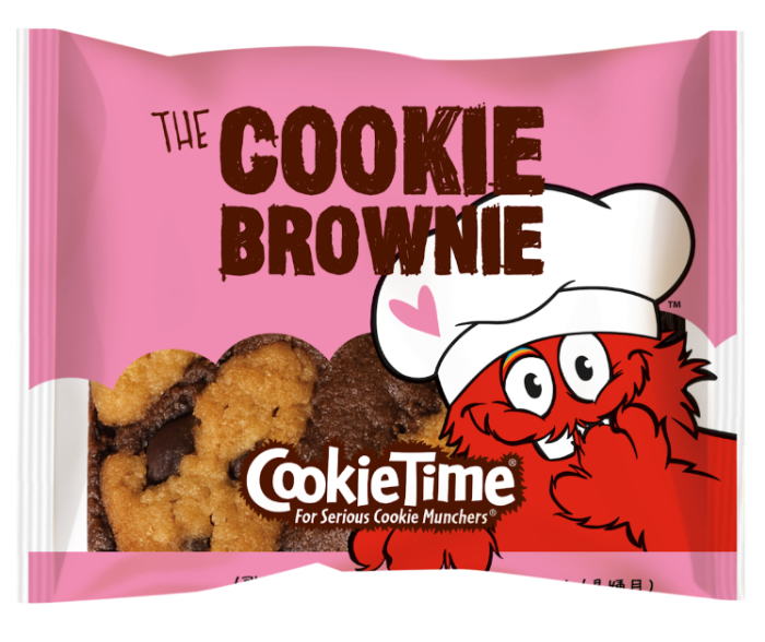 「クッキーブラウニー」は40g入り・302.4円(税込)。クッキータイムの定番クッキーを濃厚ブラウニーに重ねた、日本だけのオリジナルスイーツです。