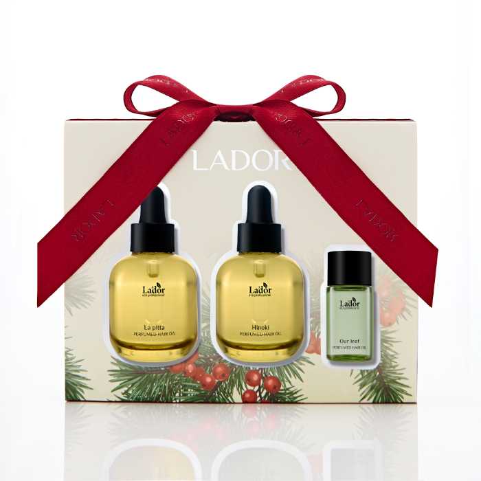 今年のクリスマスは、人気のパフュームヘアオイル「ラピタ」「ヒノキ」「アワーリーフ」を一度に楽しめるLADOR限定クリスマスコフレが登場。30mLのラピタ・ヒノキ、10mLのアワーリーフを華やかなリボン付きオブジェ風パッケージでお届け。ギフトにも自分へのご褒美にもぴったりの特別セットで、香りとツヤを日常に取り入れ、ホリデーシーズンを華やかに彩りましょう。