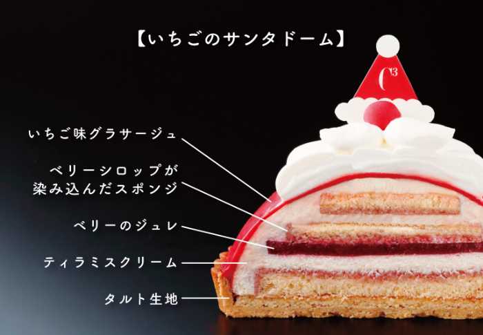 まろやかなマスカルポーネとベリーの相性が絶妙な【いちごのサンタドーム】(15cm/3,801円)。真っ赤なグラサージュとシャンティクリームで仕上げた、子どもから大人まで楽しめる一品です。