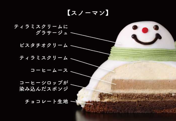 また、ティラミスムースをベースにした【スノーマン】(15cm/3,501円)は、ピスタチオクリームのマフラーが可愛らしいデザイン。